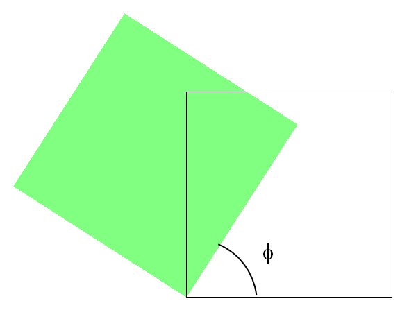 In the figure below, the deformation is decomposed into a pure stretch and pure rotation. The blue square is oriented so that it matches the principal stretch directions; it is rotated 58.3°. We can see that it assumes a pure rectangular shape and that the orientation does not change during the stretching part of the decomposed displacement.