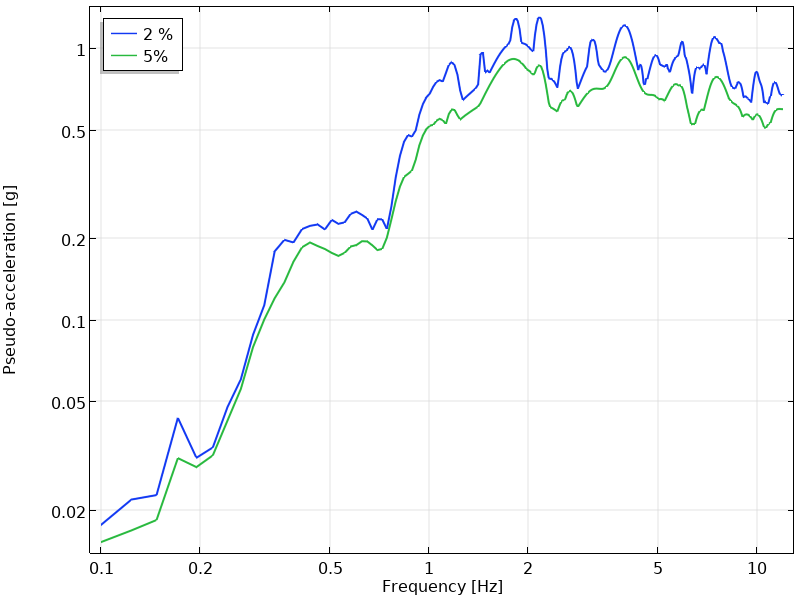 In order to be able to use a response spectrum for analysis of an event that has not yet happened, a design response spectrum is created. The design response spectrum can be seen as an envelope over all known and anticipated earthquakes in a certain geographical region. Such spectra are, for example, provided in building codes like ASCE 7-16 and Eurocode 8 (Ref. 2–3). The acceleration levels in a design response spectrum will typically depend on the geographical location and the type of soil.